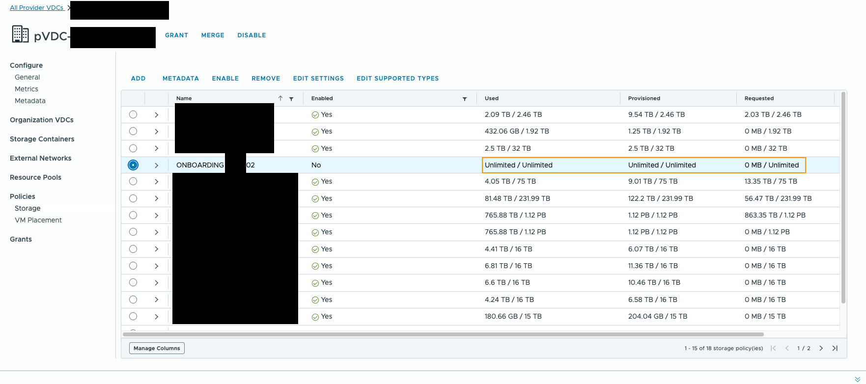 Looking at the Storage Policy on the pVDC we can see the following:
