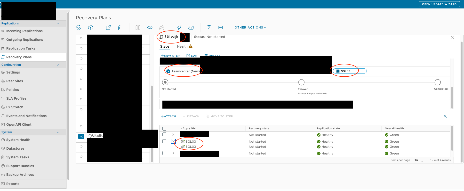 First things first, the customer removed a running replication from the VCDA environment while the Recovery Plan was running on this (not the last) Recovery Step. This did not resolve the issue at hand. I found a rogue replication entry that was still present in the Incoming Replication list. So I removed that. This also did not fix the issue.